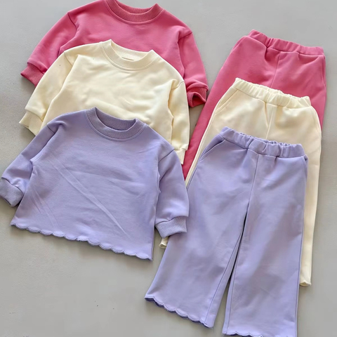 Высококачественные осенние готовые к отправке комплекты из 2 предметов для девочек, французский махровый свитшот и брюки