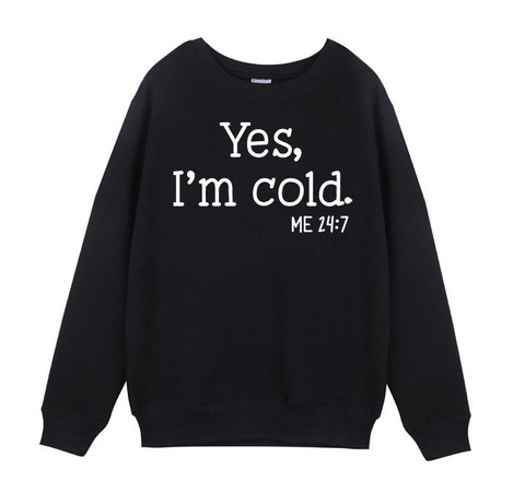 Лидер продаж, Yes I'm Cold Me 24 7, женская футболка с длинным рукавом и принтом, женская блузка для осени и зимы